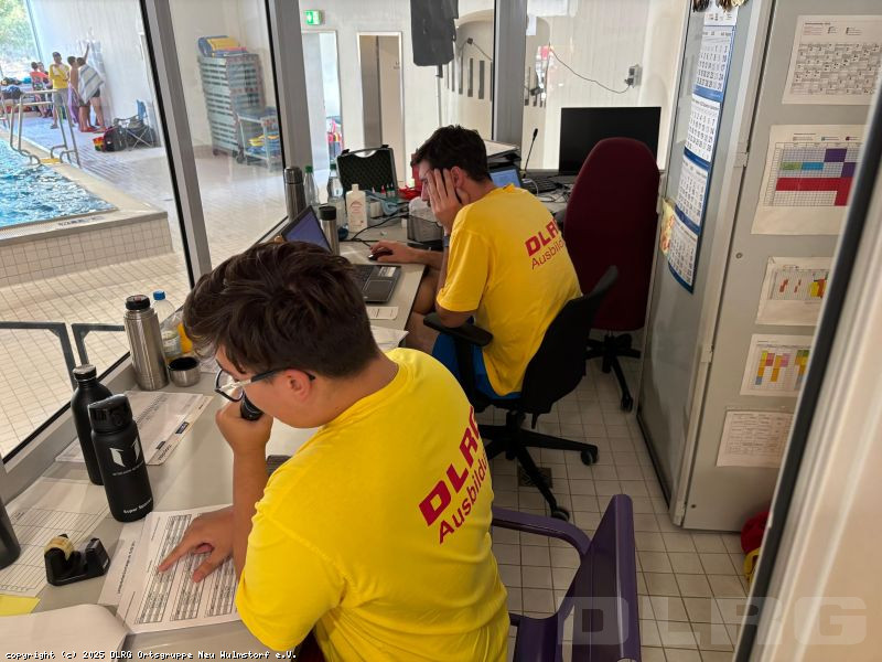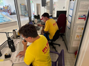 Damit die Helfer und Betreuer in der Mittagspause eine kleine Abkühlung bekommen, wurde die "Schnellste Banane" ermittelt, wobei 25 Teilnehmer eine Bahn Banane gegeneinander geschwommen sind.