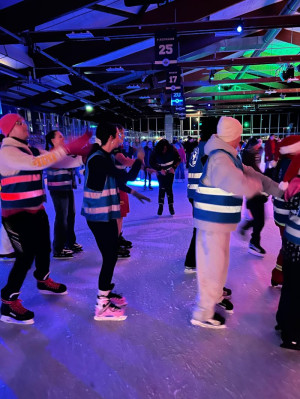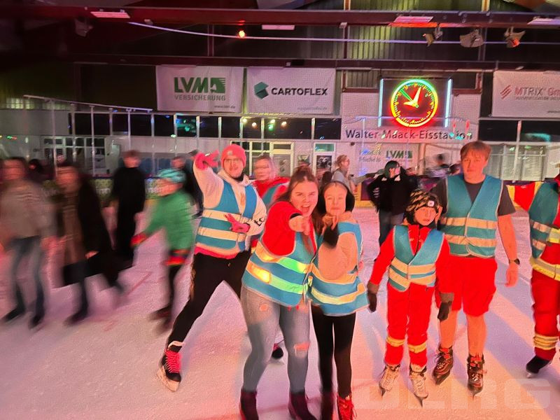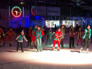 Vor Ort angekommen konnten es alle kaum erwarten endlich auf das Eis zu dürfen. Der Abend wurde von einem DJ sehr erfolgreich mit guter Musik begleitet. Zwischen der ganzen sportlichen Aktivität gab es dann noch für jeden Teilnehmer eine kleine Stärkung in Form von Punsch und Waffeln. Gestärkt konnten dann alle wieder aufs Eis springen. Nachdem einige Kinder Kilometer um Kilometer gelaufen sind und andere tapfer ihre ersten Schritte auf dem Eis gemacht haben, haben wir gemeinsam die Heimreise angetreten.