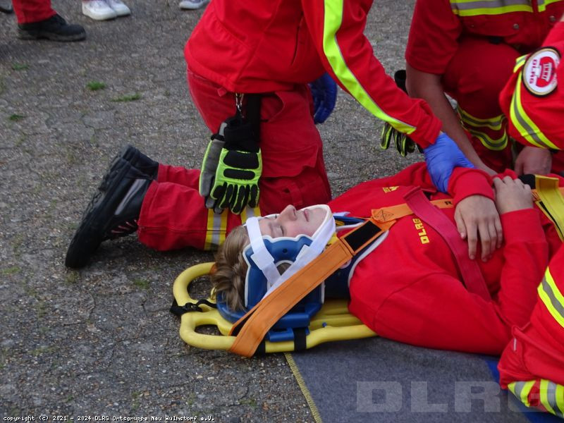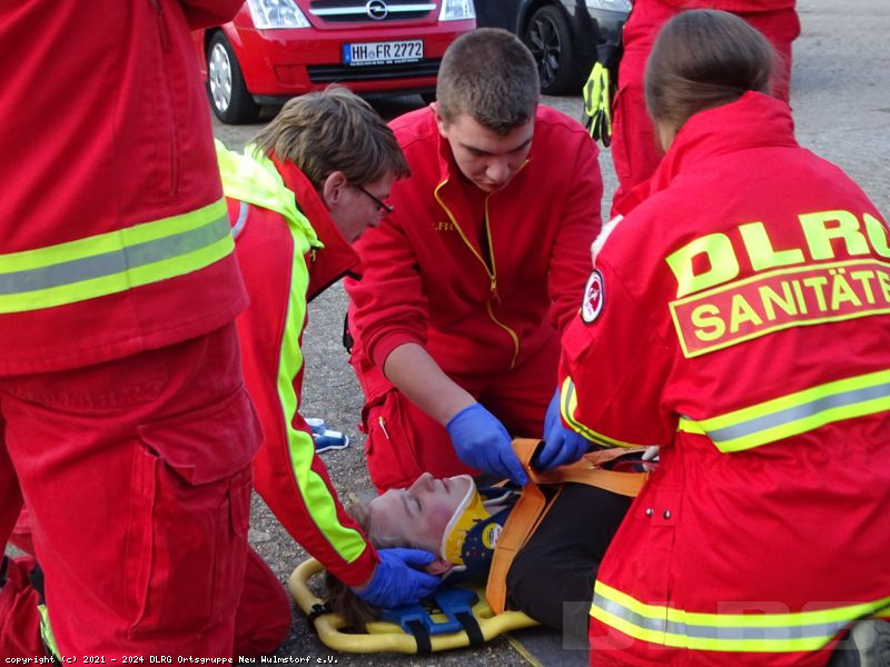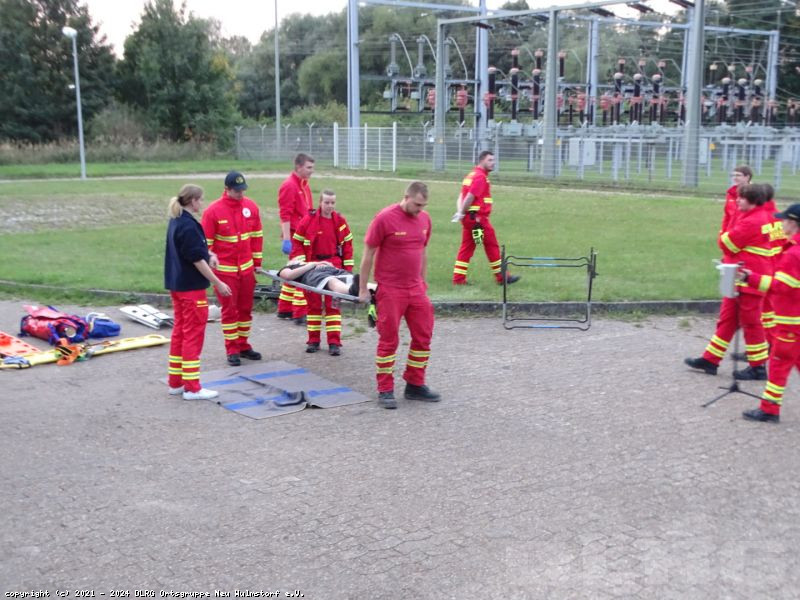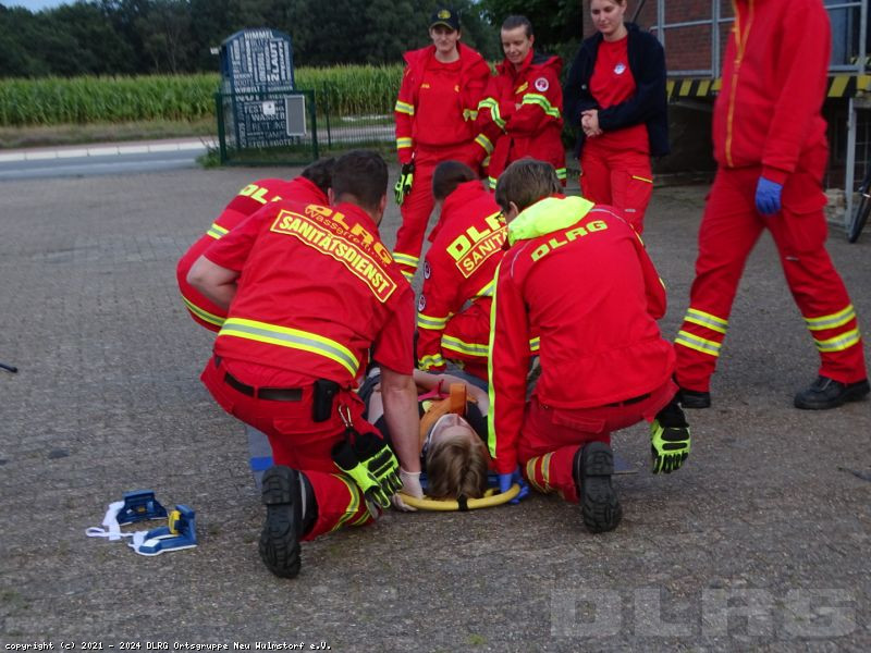 Am heutigen Dienstabend übten unsere Einsatzkräfte den Transport von Verletzten und den Umgang mit dem AED-Gerät.
