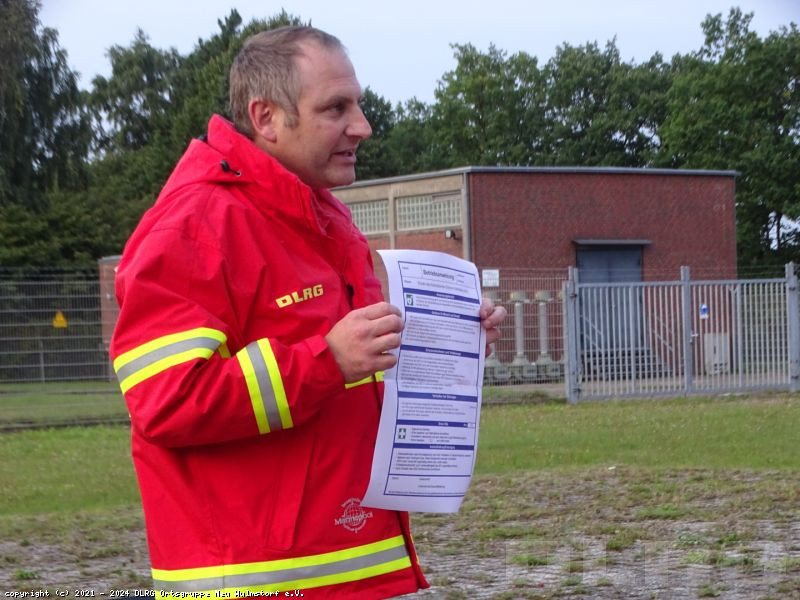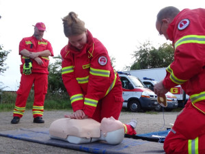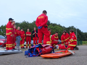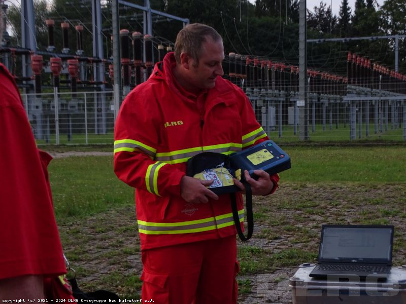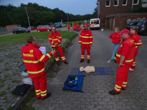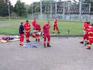 Unter der fachmännische Anleitung von Tobias, wurden praktische Übungen der verschiedenen Transportmöglichkeiten durchgeführt, während Sven die Teilnehmer am AED-Gerät schulte.