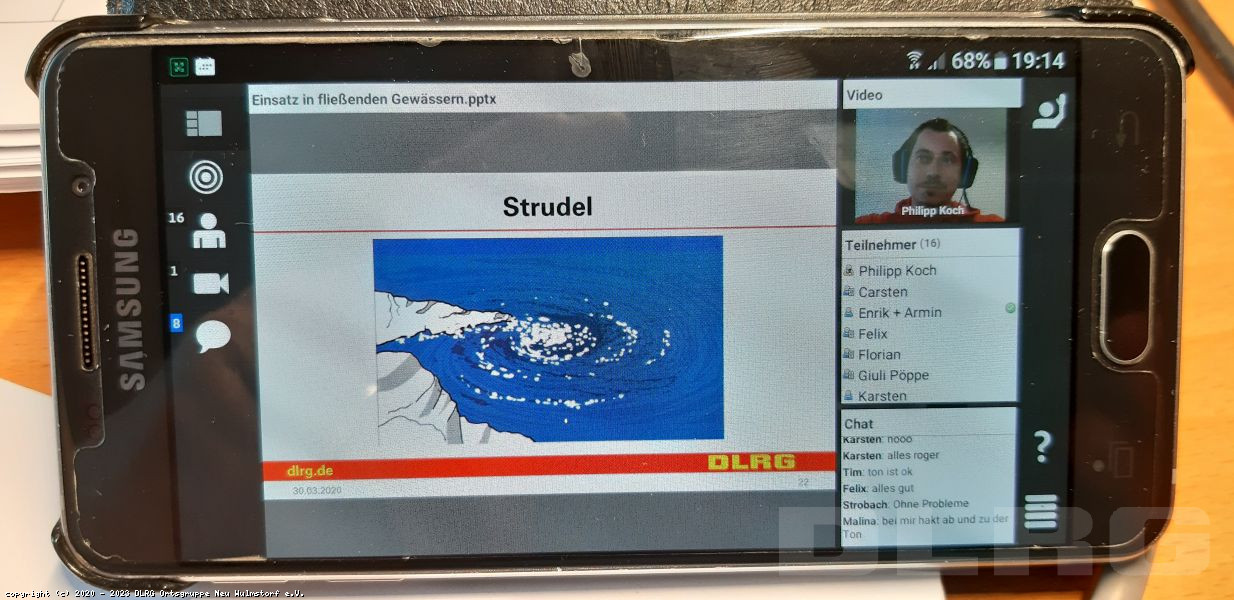 Da auch wir uns während der Ausgangsbeschränkungen, dank des Corona-Virus, nicht zum Dienstabend treffen dürfen, findet heute Abend ein Internetchat zum Thema "Strömungsrettung" statt.