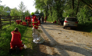 Der Fahrer eines Fahrzeuges hatte einen Herzinfarkt erlitten und ist gegen einen Baum gefahren. Dabei wurde der Beifahrer durch die Windschutzscheibe in den See geschleudert. Eine weitere Insassin auf der Rückbank erlitt einen Schock.