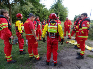 Unsere Strömungsretter zogen sich Ihre Schutzanzüge im Fahrzeug auf der Anfahrt an, damit sie sofort vor Ort reagieren konnten.
