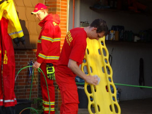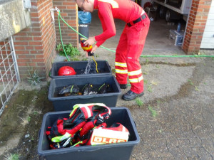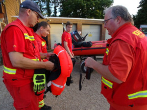 Sofort rein in die Einsatzkleidung, die persönliche Schutzausrüstung geschnappt und ab zum DLRG-Heim.