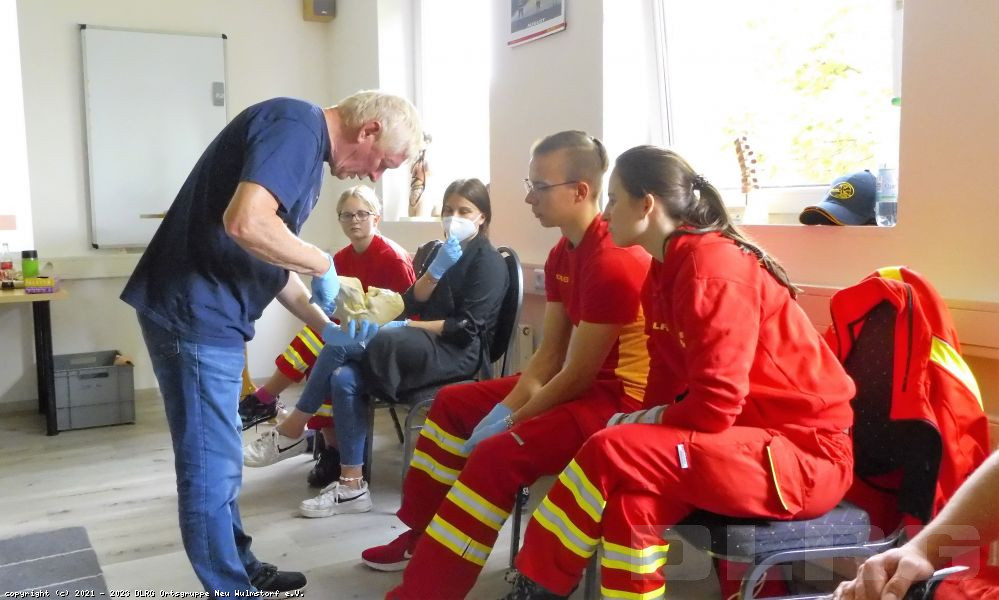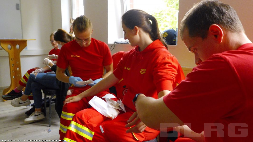 Des Weiteren beinhaltet der Kurs, das Erkennen von Notfällen, das Absetzen eines Notrufes, die Versorgung von Wunden und die Betreuung von Verletzten.