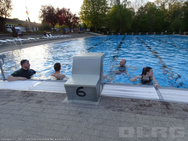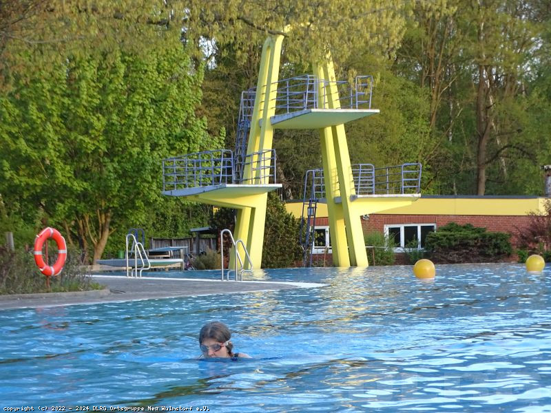 Die Sanierung unseres Hallenbades dauert schon eine lange Zeit an und ist auch noch nicht abgeschlossen, so dass wir uns nun um so mehr darüber freuen, das Freibad für die Schwimmausbildung nutzen zu können.