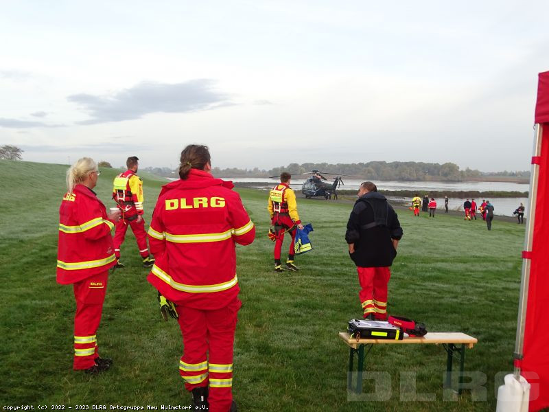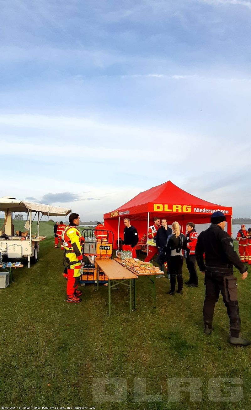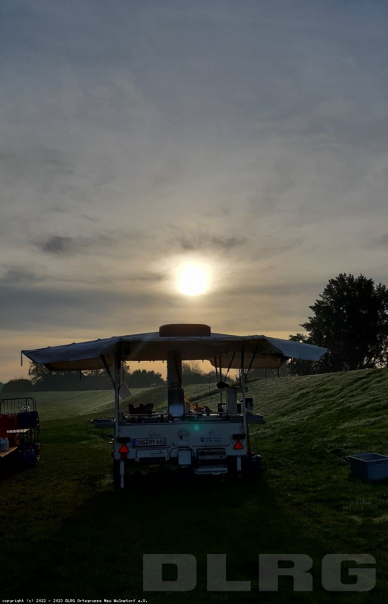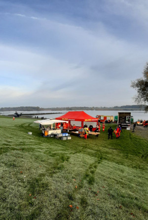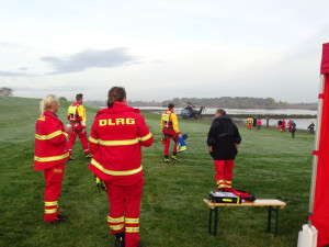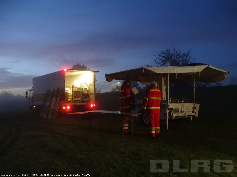 Heute Früh um 6.00 Uhr starteten wir mit unserer Feldküche in Richtung Laßrönne, um dort bei einer Übung der Hubschraubergestützten Wasserrettung (HgWR) die Verpflegung für ca 45 Teilnehmer zu übernehmen.