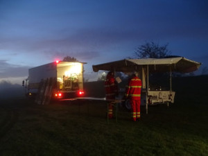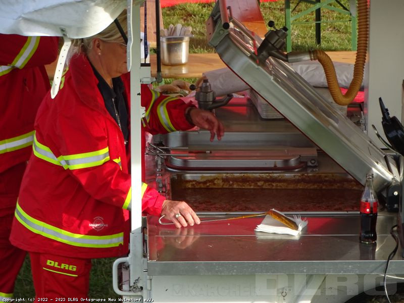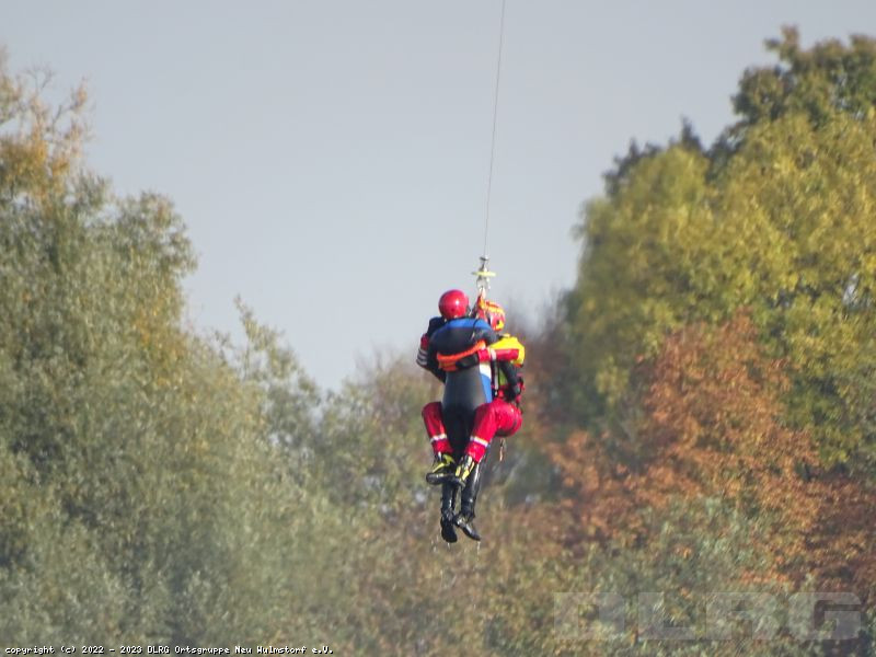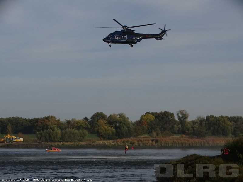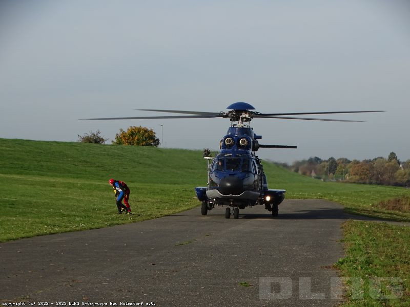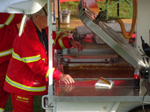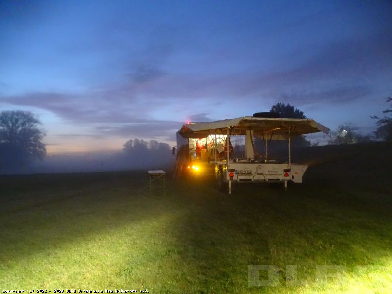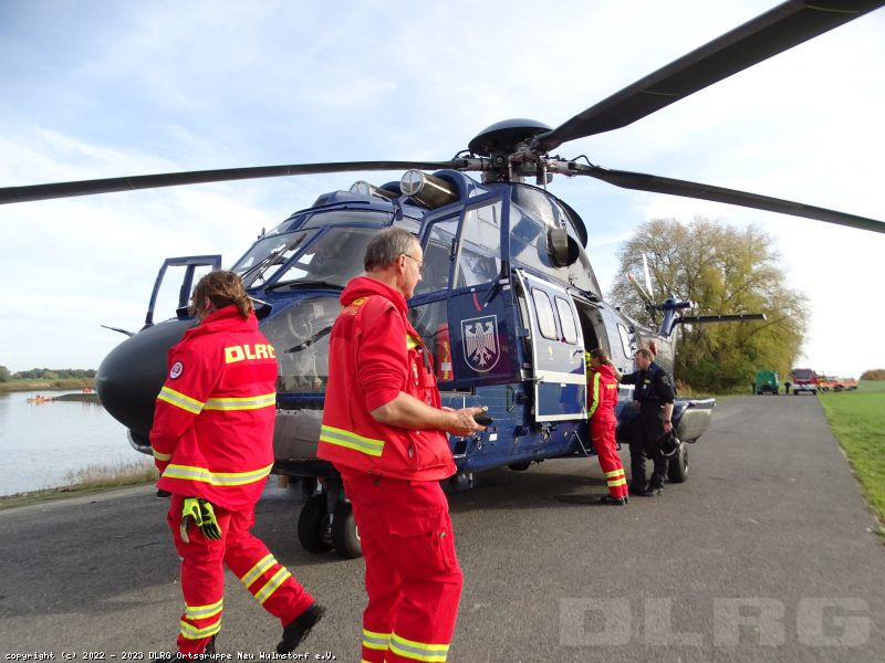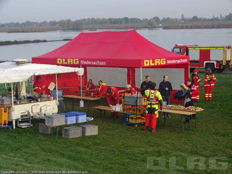 Heute Früh um 6.00 Uhr starteten wir mit unserer Feldküche in Richtung Laßrönne, um dort bei einer Übung der Hubschraubergestützten Wasserrettung (HgWR) die Verpflegung für ca 45 Teilnehmer zu übernehmen.