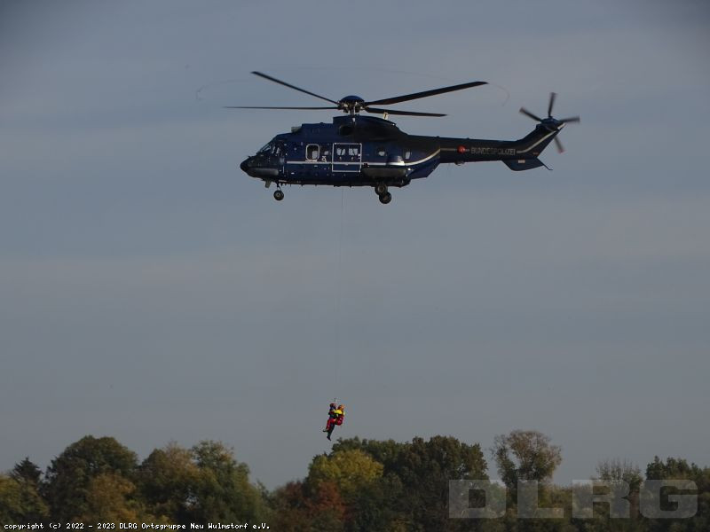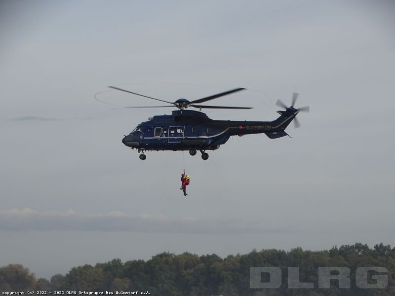 Bei dieser Übung trainierten die Organisationen aus DLRG und DRK/Wasserwacht gemeinsam mit Kräften der Bundespolizei für den Ernstfall eines Einsatzes in Hochwassergebieten, die Rettung, die Evakuierung und die Versorgung von in Not geratener Personen.