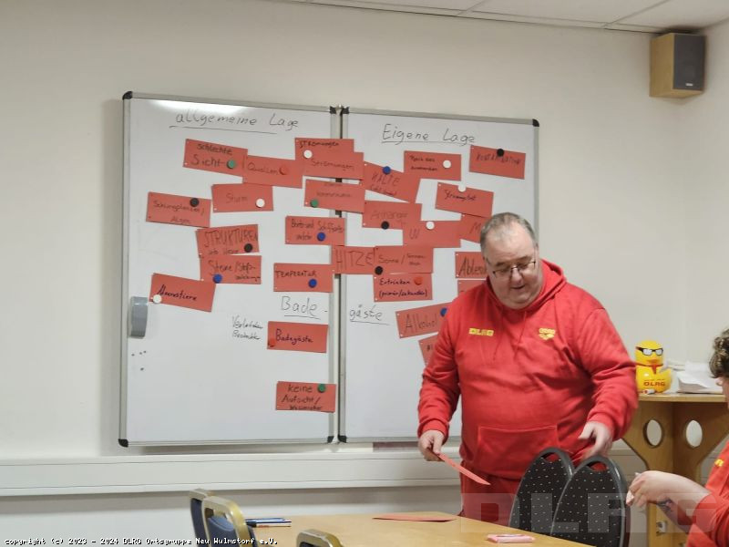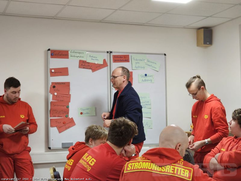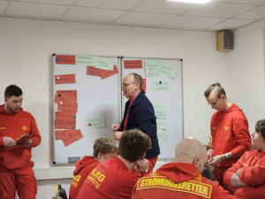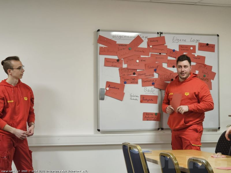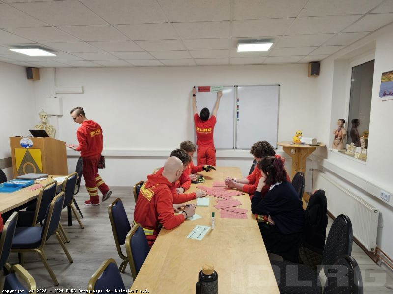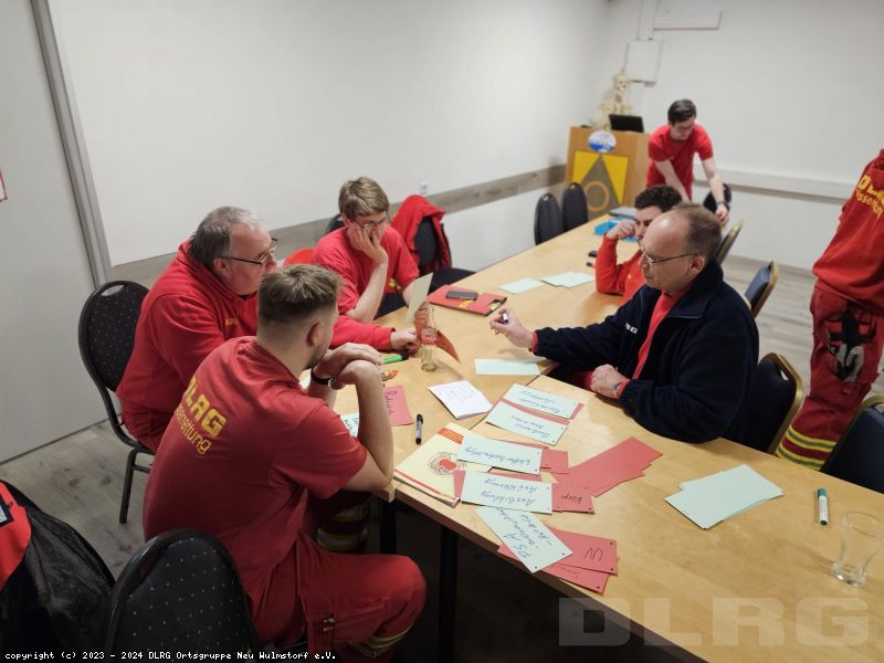 Zuerst galt es in einer Gruppenarbeit die wichtigsten Gefahren und dazugehörige Schutzmaßnahmen gemeinschaftlich herauszuarbeiten. Im Anschluss wurde es spannend! Es folgte der Austausch von Erfahrungen und Erlebnissen der Einsatzkräfte. Ob an der Küste, in Binnengewässer oder an Land, vielen Dank für die interessanten und vor allem lehrreichen Geschichten!