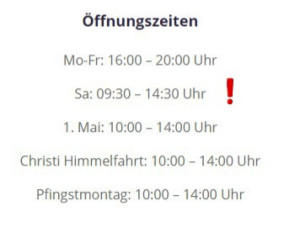 Wir sind dann Samstags von 9.30 Uhr bis 14.30 Uhr für euch da.