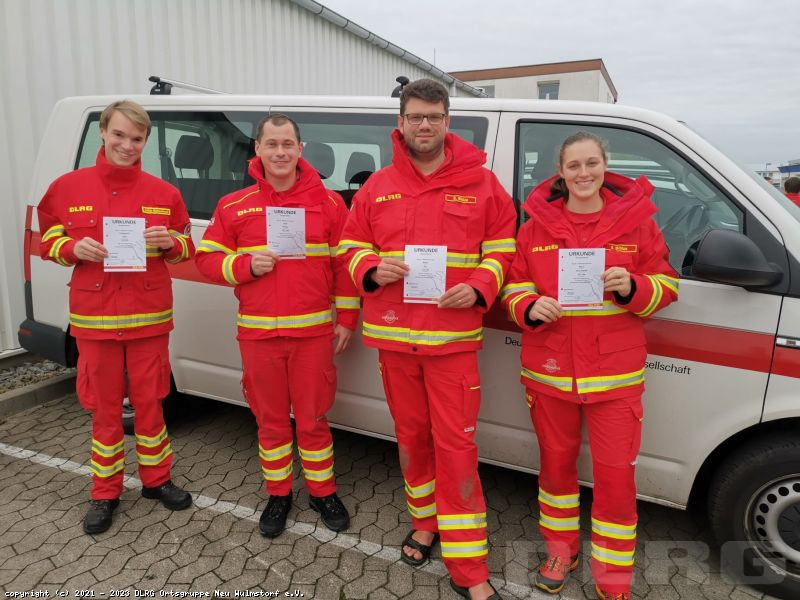 Wir freuen uns über neue Gruppenführer im Bezirk. Foto Julius Kaldenbach (DLRG OG Buxtehude/Bez. ), Philipp Koch (DLRG OG Neu Wulmstorf), Eric und Sara Bibiza (DLRG OG Hollenstedt)