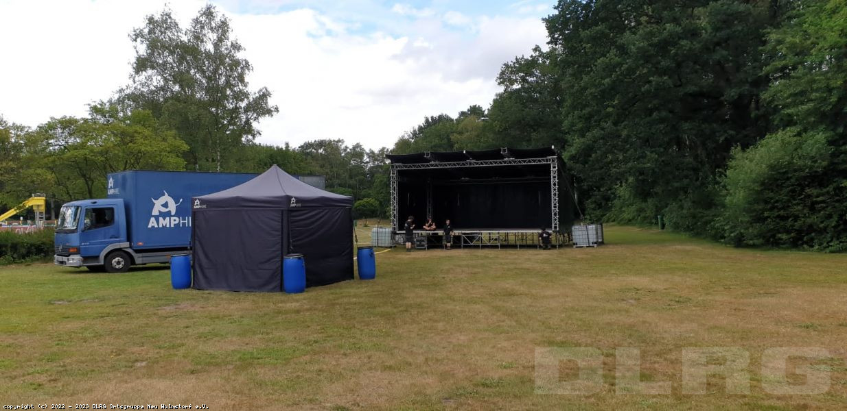 Auf dem Gelände des Freibad Neu Wulmstorf ist die Bühne für die Bands bereits aufgebaut, die Getränke kaltgestellt und das Personal steht in den Startlöchern.
