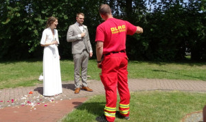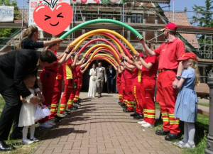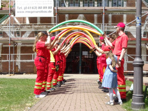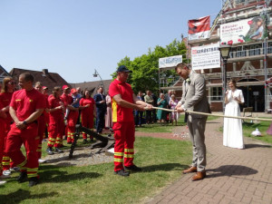 Heute morgen vor dem Standesamt in Jork ließen wir es uns nicht nehmen, das frisch gebackene Brautpaar mit einem Spalier aus Poolnudeln zu begrüssen