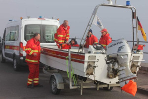Pünktlich um 06:15 Uhr haben sich die Wasserrettungszüge Lüneburg und Landkreis Harburg in den Bereitstellungsräumen versammelt. Auf der Anfahrt nach Hohnstorf/Elbe begleitete diese auch die Feldkücheneinheit aus Neu Wulmstorf. Bevor es für die Wasserretter auf das Wasser ging, stand für die Boote und Mannschaften ein Sicherheitscheck an. Nils Meinke als Referent Boot der Leitung Einsatz im Bezirk überprüfte unter anderem die Rettungswesten, Feuerlöscher und Führerscheine der Bootsführer. Auch die Sicherheitsausrüstung der Boote mit Feuerlöscher, Ersatzpropeller, Werkzeug Paddel wurden gecheckt. So überprüft ging es für die 7 Boote endlich aufs Wasser. Neben Fahrübungen auf ihrer Fahrt Richtung Geesthacht war im ersten Teil die Navigation durch den dichten Nebel ein interessanter Übungsteil. Das Schleusen in einer großen Kammer der Staustufe war für einige Bootsführer das erste Mal.