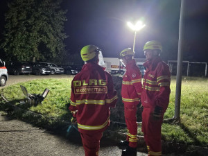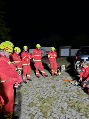 Alle Themen wurden sowohl mit unserem Senior Jugend-Einsatz-Team (JET) als auch im Anschluss mit den Einsatzkräften durchgegangen bzw. durchgespielt. Um eine gute Ausleuchtung des Geländes im späteren Verlauf des Abends zu gewährleisten, wurde kurzerhand unser neuer Lichtmast getestet und kam zum ersten Mal zur Anwendung.