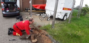 Jürgen kümmerte sich um die Lunke unter den Pflastersteinen, vor dem Feldküchen-Carport.