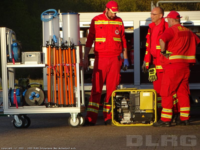 Von der Feldküchenausrüstung über die Beleuchtungseinheit, dem Strömungsretter-Material, den Booten, den Fahrzeugen, dem Kat-S Materialanhänger und den Notstromaggregaten wurde alles geprüft, damit im Einsatz die Funktionsfähigkeit gegeben ist.