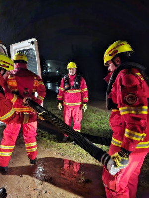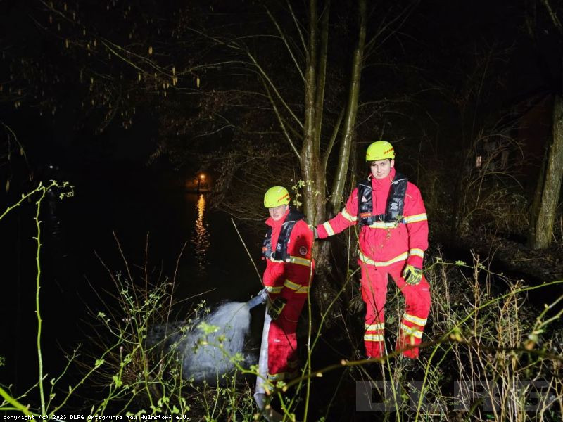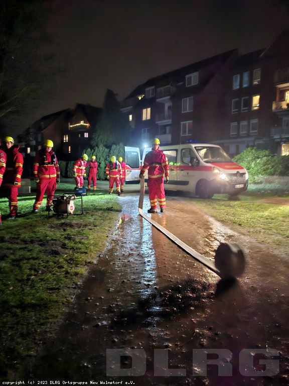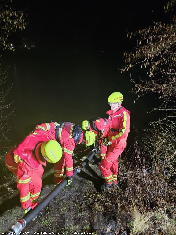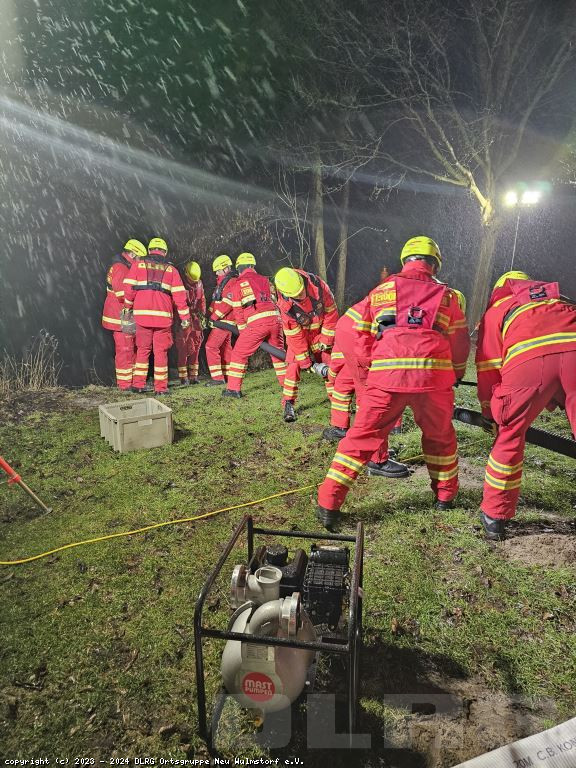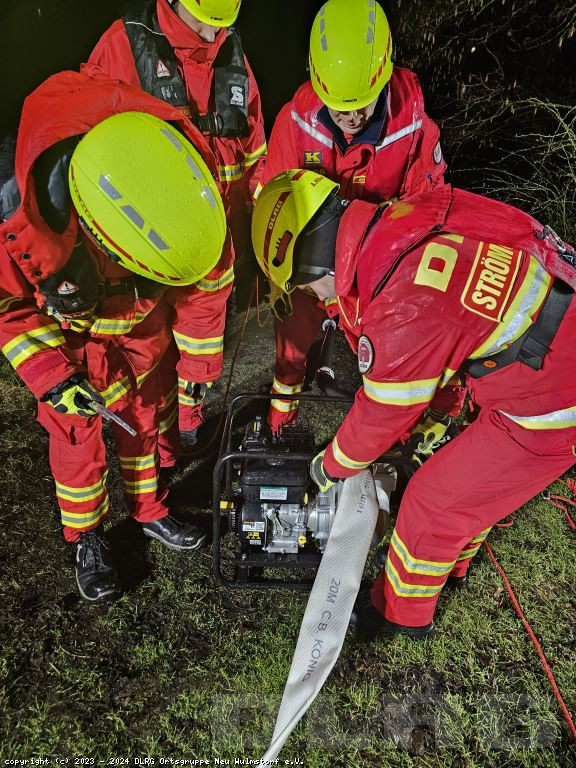 Nachdem die Einsatzstelle zunächst erkundet und anschließend ausgeleuchtet wurde, wurde die Pumpe einsatzbereitgemacht und der Vorgang mehrmals wiederholt.