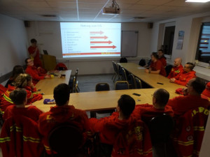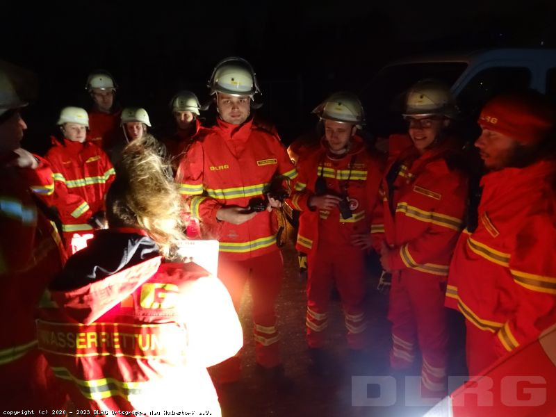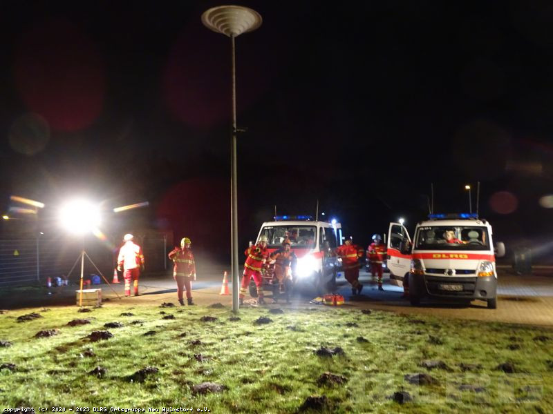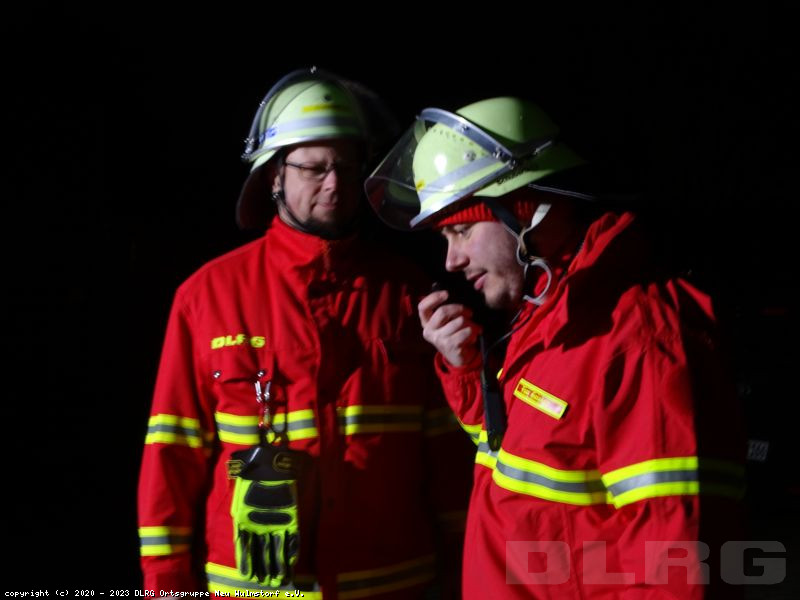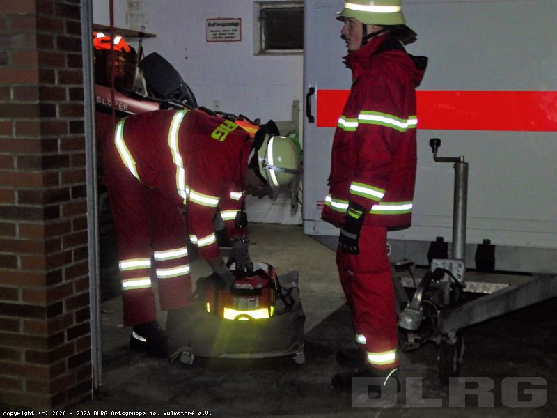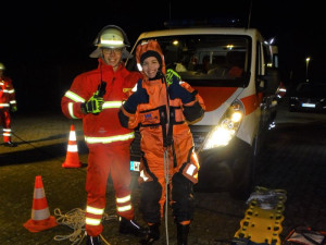 Zeitgleich sorgte sie per Funk dafür, dass die Kameraden die Beleuchtung an der Einsatzstelle installierte und eine andere Gruppe sich auf die aktive Rettung vorbereitete, indem Zoe den Kälteschutzanzug anzog und weitere Kameraden dafür sorgten, das sie und das Spineboard angeleint wurden.