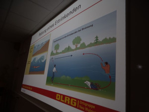 Bei Personenrettung, unbedingt den Retter anleinen und in der Nähe von Schiffen auf die Strömung und den Sogverlauf achten.