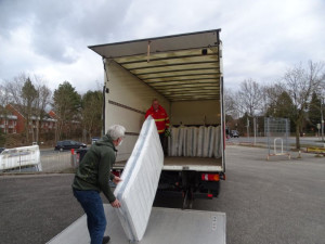 Nachdem am gestrigen Abend bereits Bettdecken, Kopfkissen und Hygieneartikel angeliefert werden konnten, war es heute möglich, 21 Matratzen bereitzustellen.