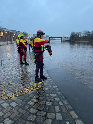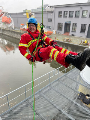 Zwei Wochenenden lang haben sich Karsten und Philipp in Bremerhaven zum Strömungsretter 2 fortgebildet (2G+ Veranstaltung). Hierbei wurden auch sog. Standardverfahren geübt, welche die Einsatzfähigkeit unserer Ortsgruppe im Katastrophenschutz deutlich erweitern. Hierzu zählen z.B. das Abseilen, die Schräghangrettung sowie der Bau einer Seilbrücke. Bei gut 1°C Außentemperatur wurden diese Verfahren im kühlen Nass sowohl bei Tageslicht als auch bei Nacht intensiv geübt.