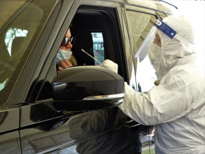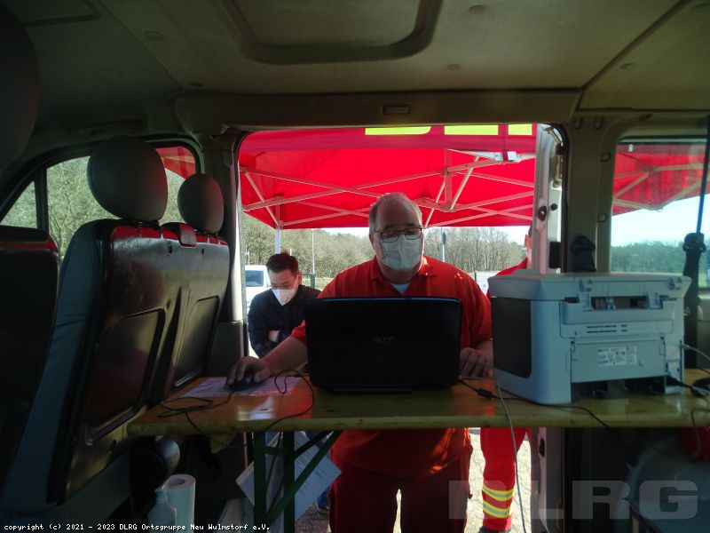 An der 1. Station steht ein Mitarbeiter und gleicht die Anmeldedaten mit dem Personalausweis der zu testenden Person ab und händigt ihm einen Ausdruck aus, mit dem er dann zur nächsten Station fährt, wo der Schnelltest in Form eines Nasenabstriches (vorne an in der Nase, ca. 3 cm) erfolgt.