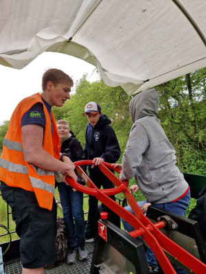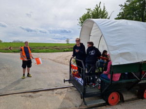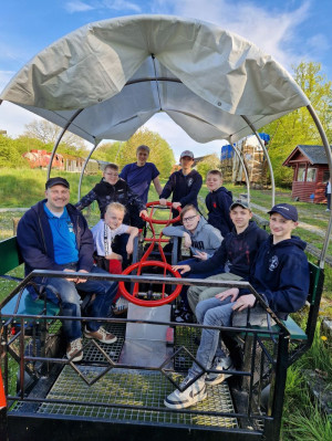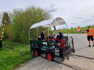 Als es mittags bei guten Wetter am Vereinsheim los ging, waren die Straßen leider sehr voll, weshalb wir fast drei Stunden zu unserem Ziel der Erlebnisbahn Ratzeburg in Schmilau brauchten. Zum Glück ließen wir uns die gute Laune nicht verderben und starteten die Fahrt mit zwei Hebeldraisinen in das neun km entfernte Hollenbek. Auf dem Weg durch Wald und Wiese mussten immer wieder Schranken geöffnet und Straßen abgesichert werden, um sicher an das Ziel zu kommen.