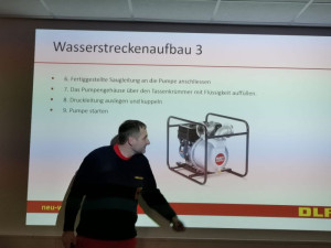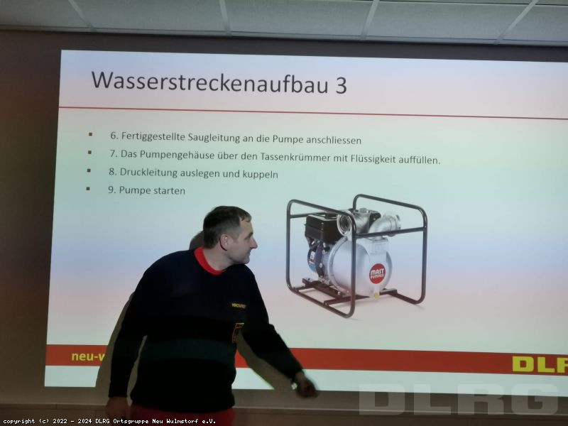 Am vergangenen Montag wurden unsere Einsatzkräfte in den theoretischen Betrieb unserer neuen Pumpe „MAST NP 8B“ eingewiesen. Diese Pumpe wird u.a. zum Leerpumpen überfluteter Keller in Hochwassergebieten oder nach Starkregenereignissen oder bei Leckgeschlagenen Booten eingesetzt.