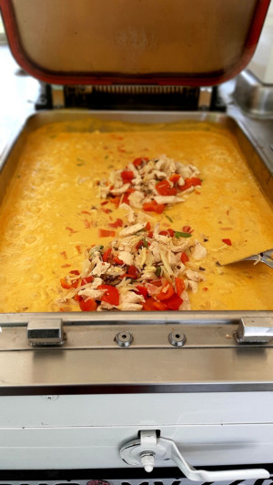 Samstag morgen, nach dem Frühstück, begannen wir mit den Vorbereitungen und geschnibbel für das Mittagesen. Curry-Huhn an Gemüse mit Reis, Tomatensalat und Heidelbeerquark. Doris Schröder-Köpf und Boris Pistorius waren am Samstag auch zu Gast zum Essen.