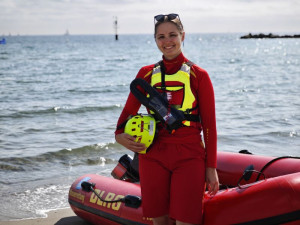 Den Anfang machte Mina, sie war für 2 Wochen in Grömitz und hat dort ihren ersten Küsten-Wachdienst verrichtet. Sie hat die Türme fest mitbesetzt und durfte einen Tag auch auf dem IRB (Inflatable Rescue Boat) mitfahren, um eine zusätzliche wasserseitige Absicherung der Badegäste zu gewährleisten.
